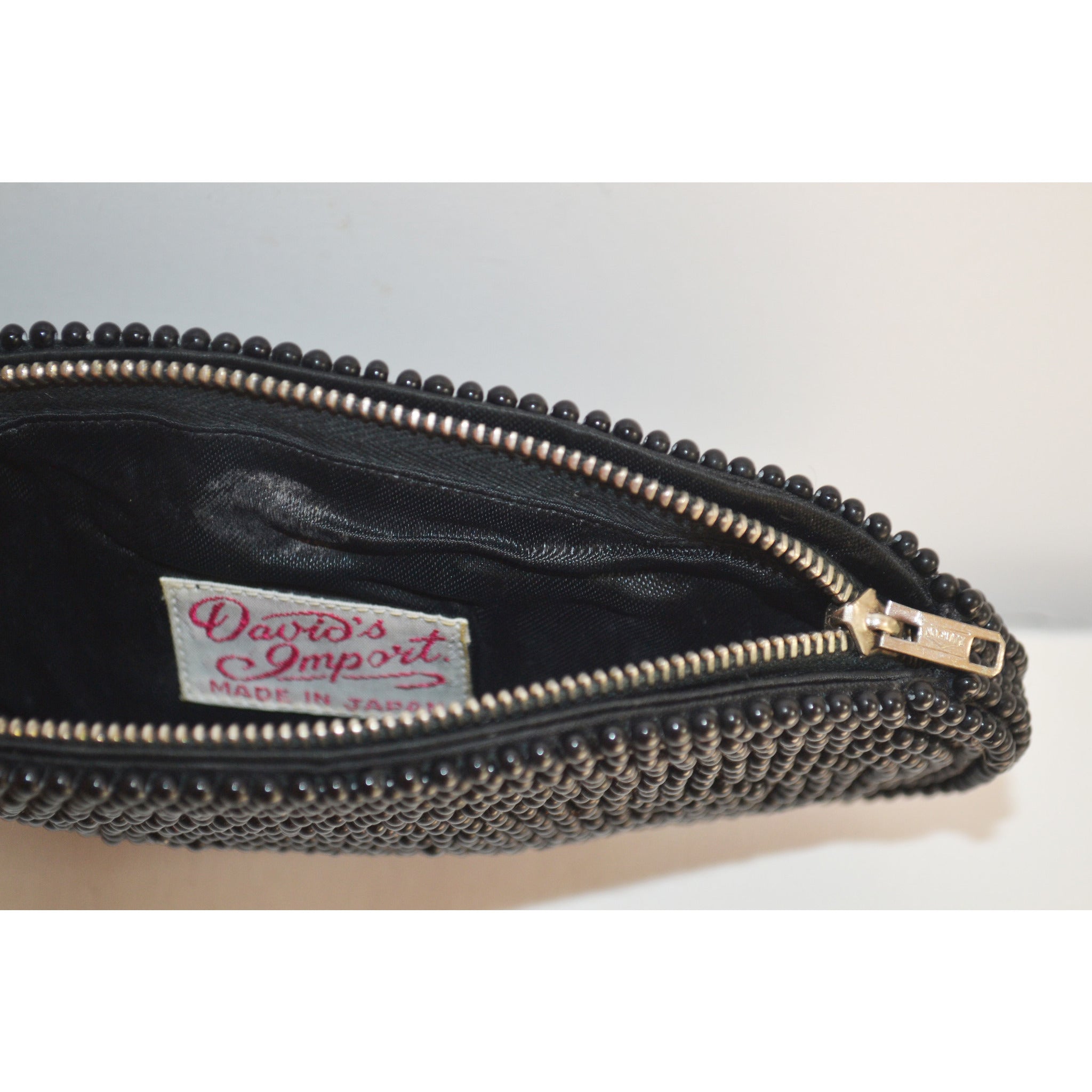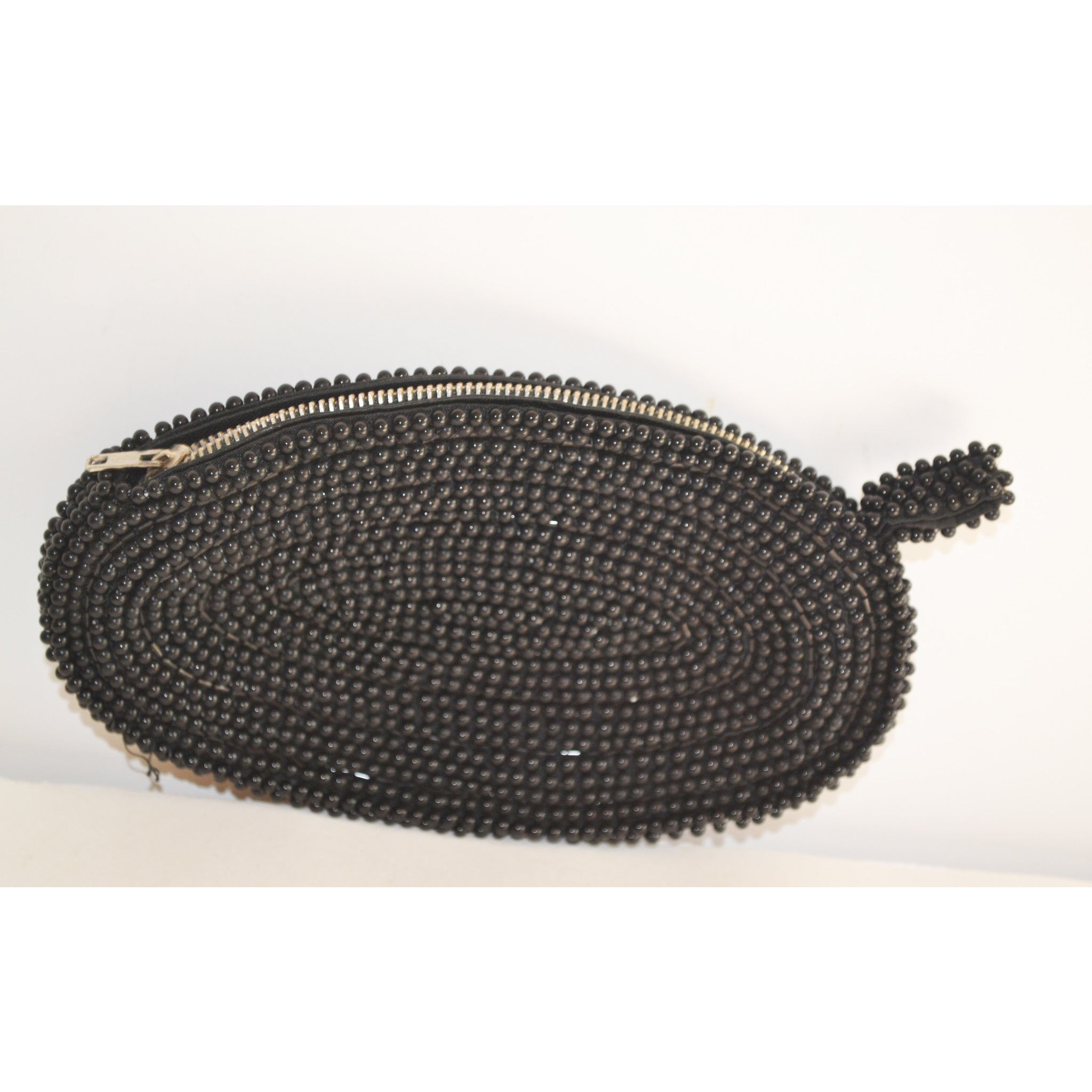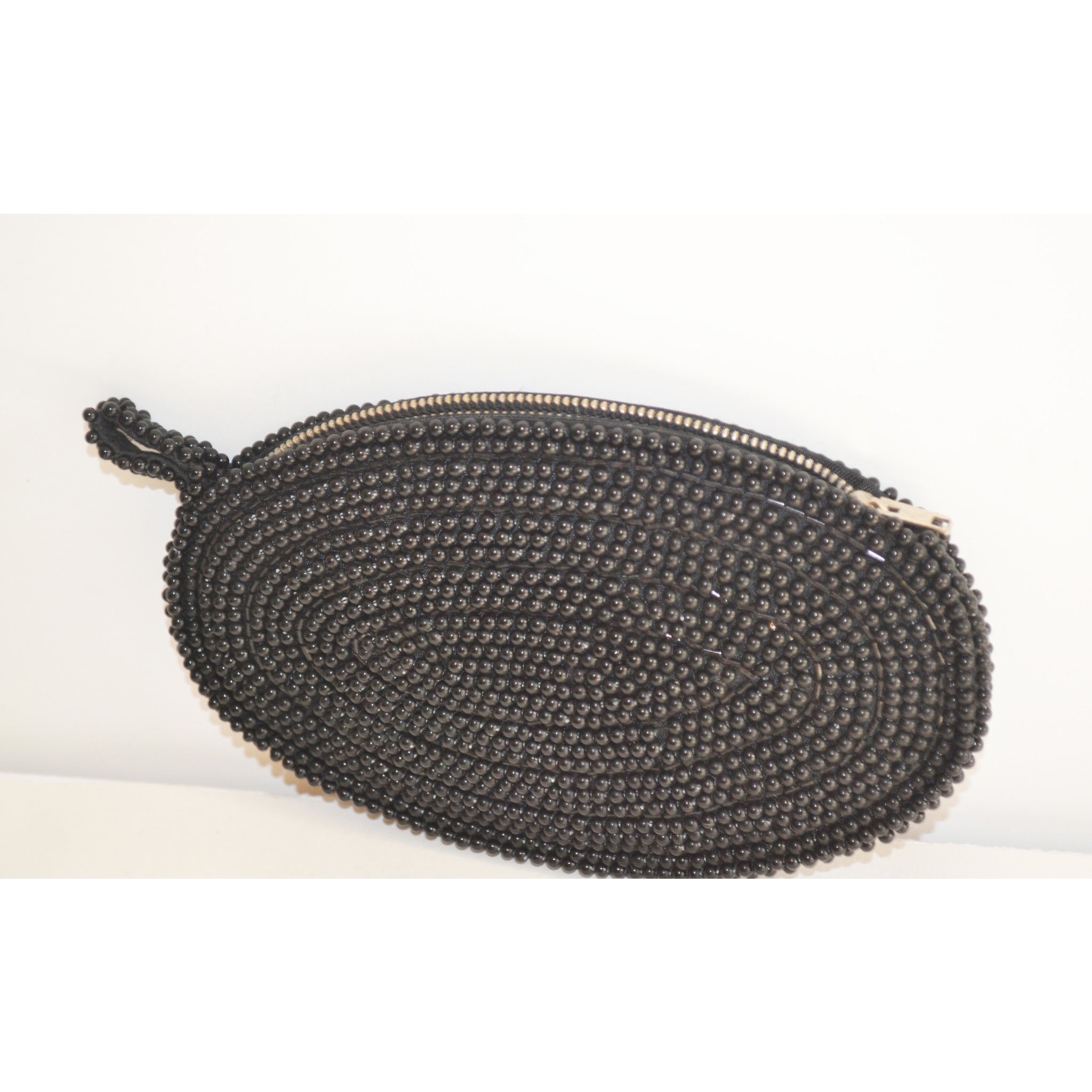 This vintage black oval swirl beaded evening coin purse is from David’s Import. Interior is fabric lined.