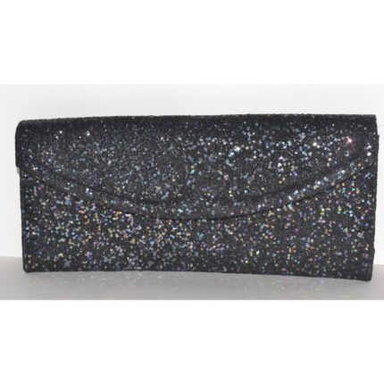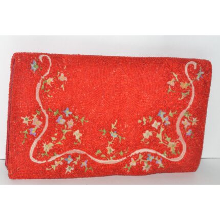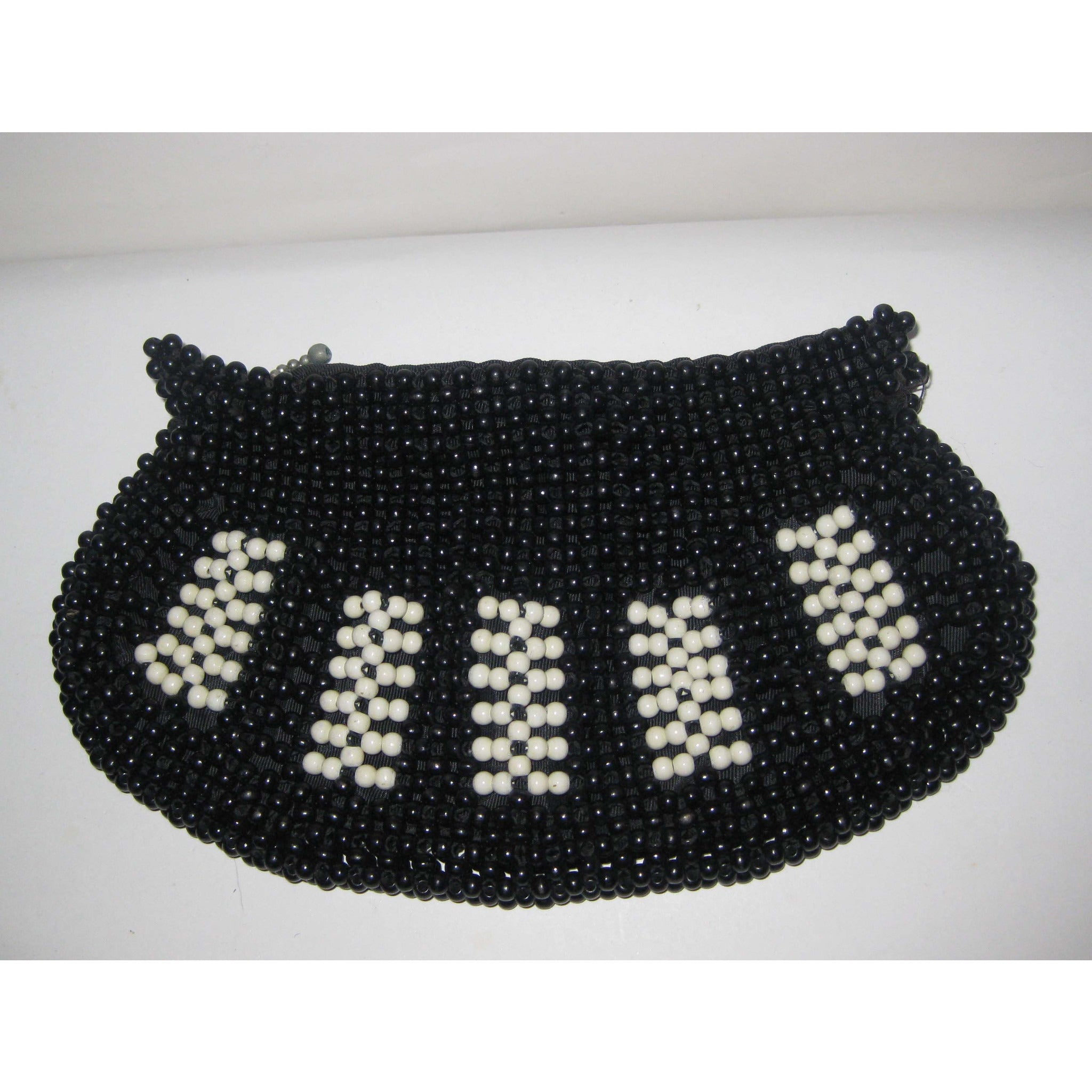This cute black & white beaded evening purse has fabric interior with one pocket. Solid black on reverse side. Â